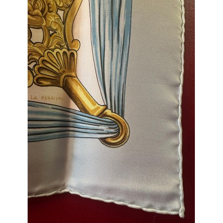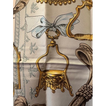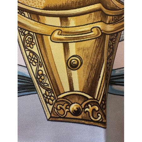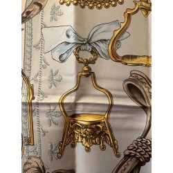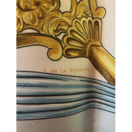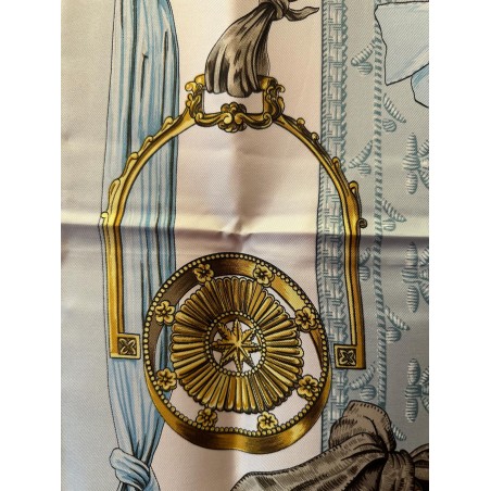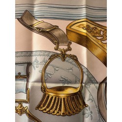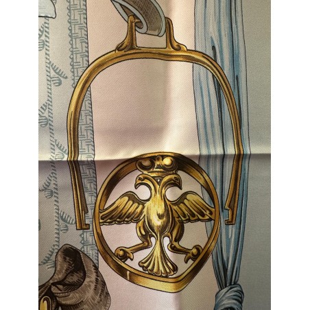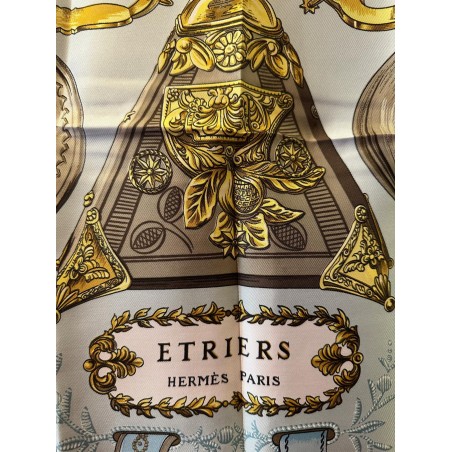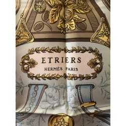 Un grand classique de la maison. Étriers fut inspiré à Françoise de la Perrière par la collection Émile Hermès, riche de nombreuses pièces de harnachement. Leur beauté reflète l'infinie diversité des innovations techniques et esthétiques à travers les âges et les frontières. Mettant en exergue un ensemble d'étriers des XVIII° et XIX° siècle, la dessinatrice nous fait voyager de l'Amérique du Sud au Moyen-Orient en passant par la France et l'Espagne. Destinés à des cavaliers ou à des amazones, les ornements des étriers sont d'un très grand raffinement. Fleurs, étoiles et animaux de légende finement ciselés les rendent aussi précieux que des bijoux.