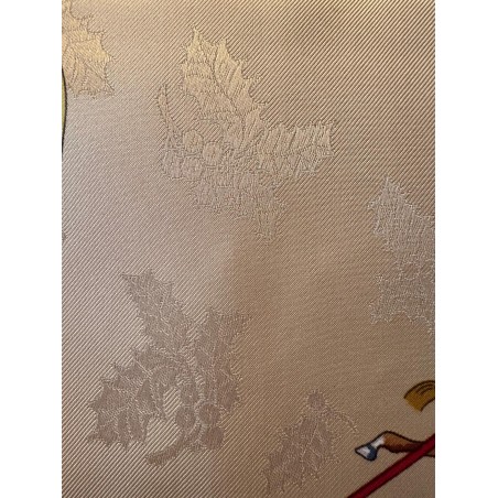 En soie brochée de feuilles de houx