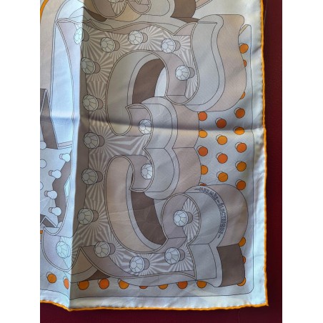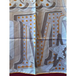Sous les feux de la rampe, Hermès s’amuse à brouiller les pistes. Comme dans une ville en fête, comme sous un chapiteau de cirque, comme sur une affiche de comédie musicale de Broadway, son nom vibre en lettres de lumière ! Dans cette composition de Dimitri Rybaltchenko, les lettres jouent les équilibristes, l’ambiance est électrique, énergique, dynamique : attention Mesdames et Messieurs, le spectacle va commencer !
