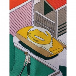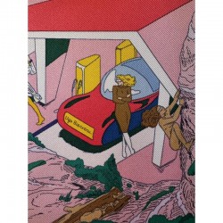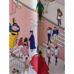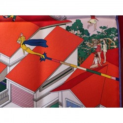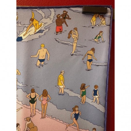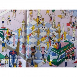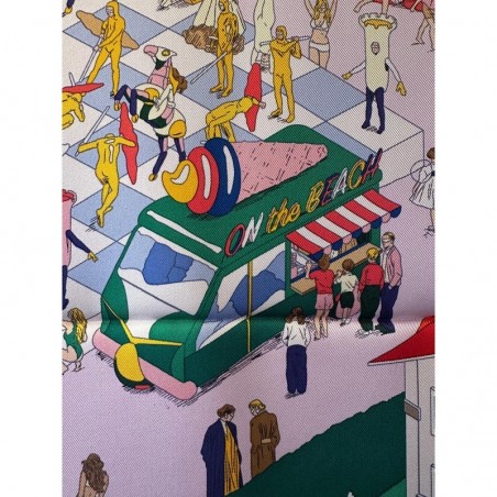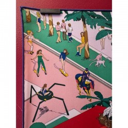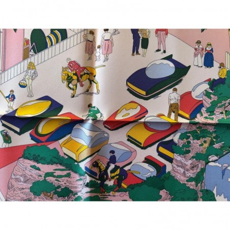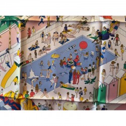 Le dessinateur Ugo Bienvenu célèbre la douceur de l'été et l'insouciance des vacances en bord de mer. Une foule de touristes fait battre le coeur d'une station balnéaire futuriste, inspirée par l'univers des comics américains. Une super-héroïne survole les toits de la ville sur lesquels se sont perchés des adolescents audacieux. Une course de chevaux rutilants traverse une avenue, tandis qu'on se prélasse non loin au bord de la piscine. Une sirène s'est même réfugiée dans les bras d'un sauveteur ! Personnages de bandes dessinées et bolides insolites se croisent aux quatre coins de ce dessin fourmillant de détails.