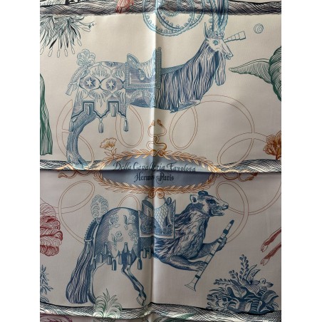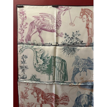 Della cavaleria favolosa est un des plus extraordinaires traités parlant de l'art équestre. Il a été écrit par Georg Engelhard von Löhneysen et fut publié en Bavière au tout début du 17° siécle. Ce traité, enluminé de gravures baroques, fait partie de la collection d'Emile Hermès. On y voit des créatures fabuleuses, des monstres chimériques et des chevaux richement parés. Avec humour l'un reçoit un yo-yo, l'autre un diabolo ou encore une raquette...