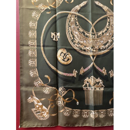 Carré créé en 1975 à la demande du métropolitan museum de New York pour accompagner l'exposition "L'or des Scythes", présentée ensuite à Paris, au grand palais en 1976. Venus d'Asie bien avant l'ère chrétienne, les Scythes ont eu une grande influence sur l'art des bijoux, grâce à un travail d'orfèvrerie extrêmement raffiné et créatif. Les hommes se couvraient d'or et ornaient armes et harnais de multiples élèments ciselés ayant pour thèmes les cavaliers et les animaux chassés (lions, chevreuils, cerfs...). Sur le carré on peut admirer peignes pour cheveux, pectoraux, amulettes, boucles de vêtements...