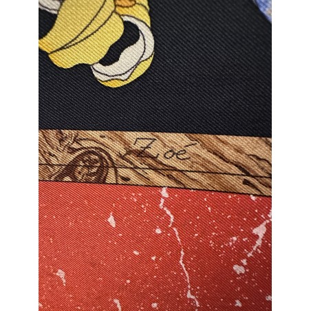 Couleurs dominantes: fond noir, bords rouges, bleu, orange Hermès...