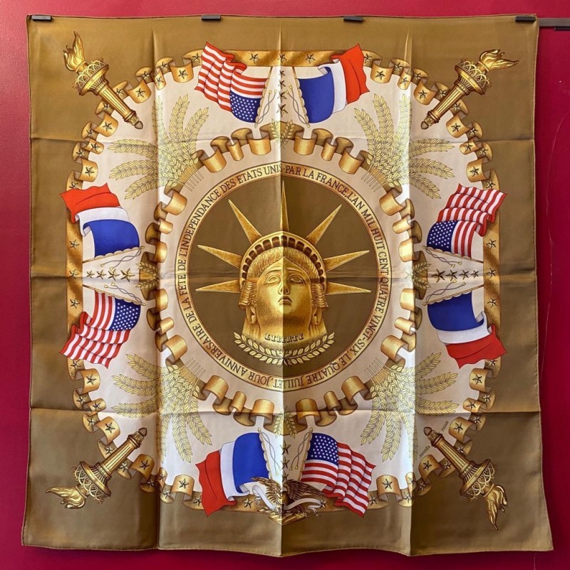Rare carré édité pour fêter l'amitié franco-américaine, 1786 indépendance des USA... 4 juillet fête nationale, fête de l'indépendance...100 ans ans plus tard, en juillet 1886 la France offre aux Etats-Unis la statue de la liberté pour commémorer cette indépendance... 1986, 200 eme anniversaire de l'indépendance américaine, centenaire de la statue de la liberté, Hermès édite ce carré...