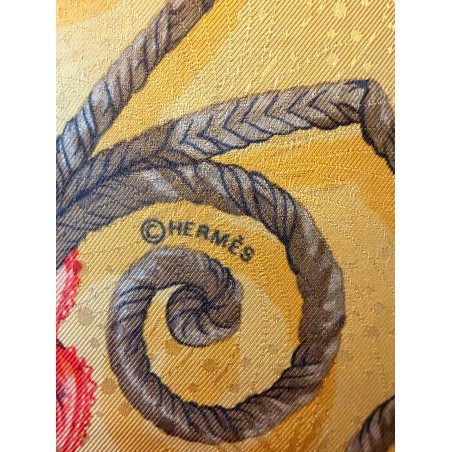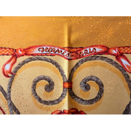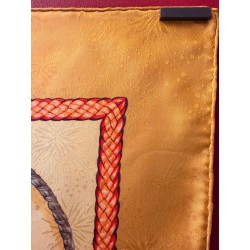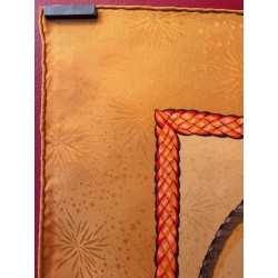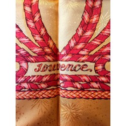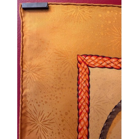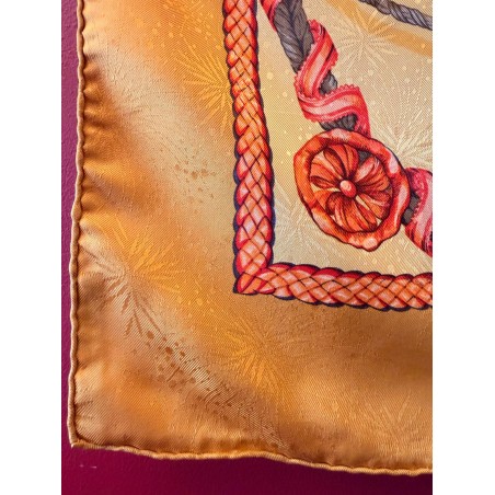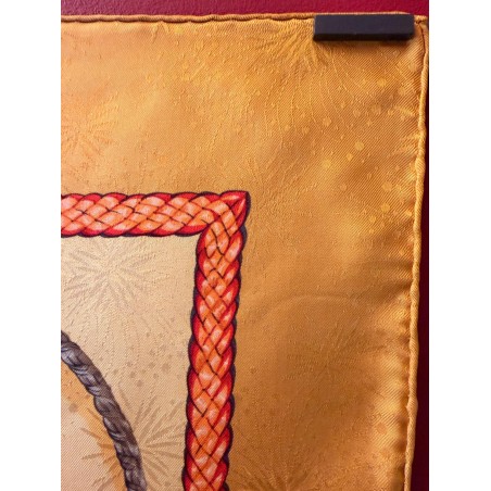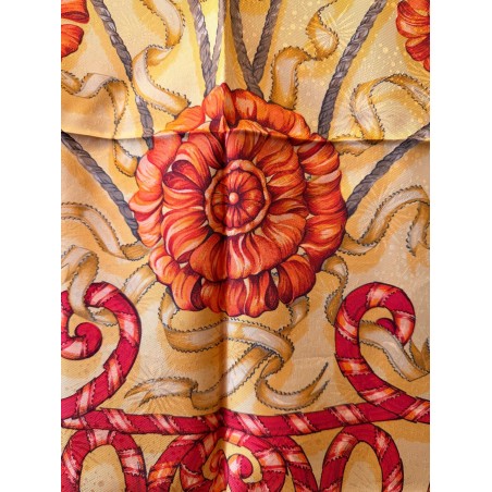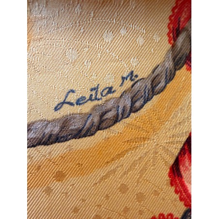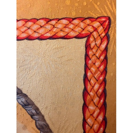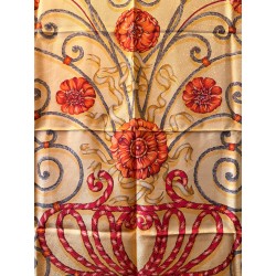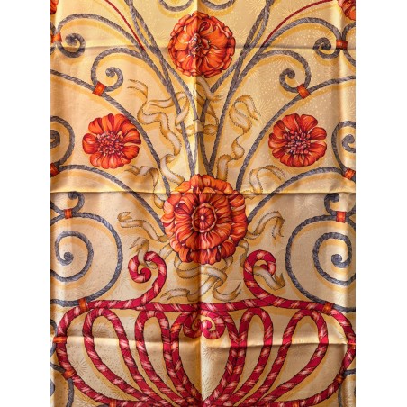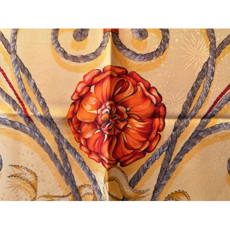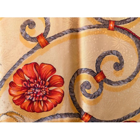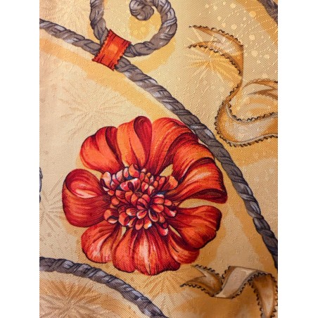 La passementerie présente sur ce carré s'est inspirée de la ferronnerie des palais vénitiens du XVI° siècle. Cordonnet de soie et ses arabesques, vases dont s'élancent des fleurs de satin dans un envol de rubans de taffetas. C'est une fontaine de jouvence, un hymne dédié à l'éternelle jeunesse de la cité des doges.