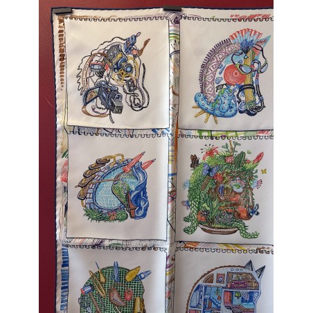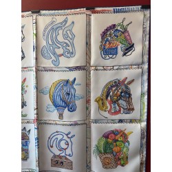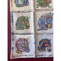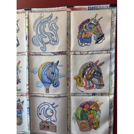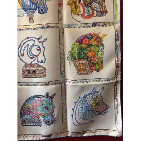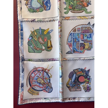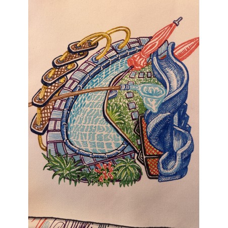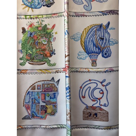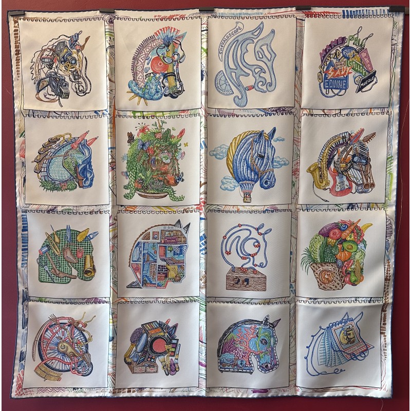 « Dessine-moi un cheval, je te dirai qui tu es », telle aurait pu être l'invitation de ce carré. Elias Kafouros, lui, en a dessiné seize dans son calepin, associant l'animal fétiche d'Hermès aux loisirs les plus divers et les plus détaillés, du jardinage aux instruments de musique, en passant par le jeu, la piscine et même la montgolfière ! Comment voir le monde à travers les yeux d'un cheval, imaginer un autre mode de vie, étonnant et ludique, et cultiver la liberté bien assumée de passer du coq à l'âne. Toujours à cheval, bien sûr !