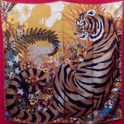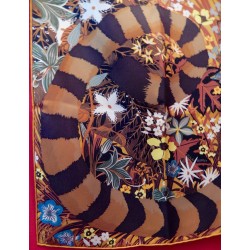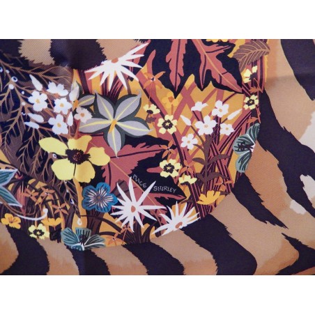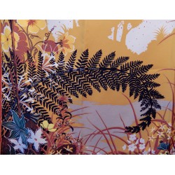 Écolière, Alice Shirley apprenait le poème The Tyger, écrit en 1794 par William Blake. Peintre et poète anglais précurseur du Romantisme, il naquit à Londres en 1757 et y mourut en 1827. La poésie a le pouvoir de s’imprimer pour toute la vie dans le cœur des enfants et la jeune femme, devenue illustratrice de talent, nous en livre un portrait très tendre. Sous un ciel rempli d’étoiles, son tigre, d’une douceur majestueuse, repose sur un lit de fleurs. Spécialiste du monde animal, elle collabore régulièrement avec le Musée d’histoire naturelle de Londres. C’est là, dans la bibliothèque du musée, qu’elle a découvert une magnifique collection d’illustrations botaniques commandées par la Compagnie des indes orientales. Elle y a retrouvé les plantes de la réserve de tigres de Periyar, au Kérala en Inde, et s’en est inspiré pour représenter le félin au sein de son univers naturel.
