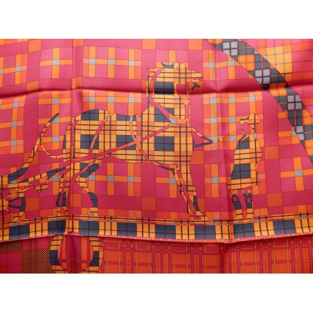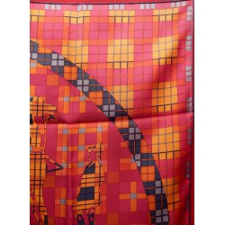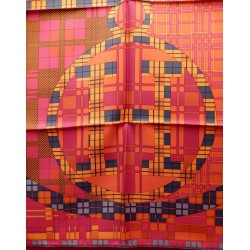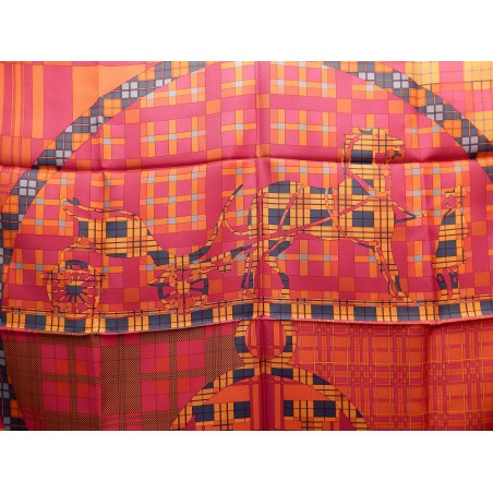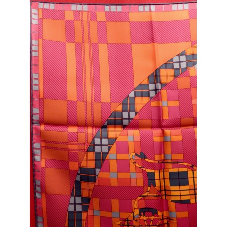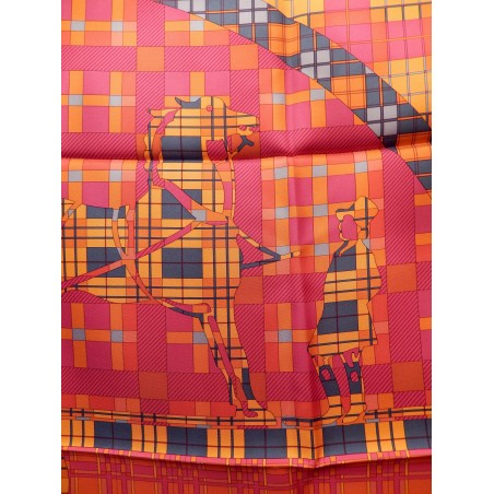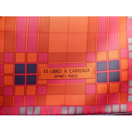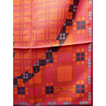 Un ex-libris est une vignette gravée d'un motif, d'une phrase ou d'initiales que les bibliophiles collent dans leurs livres afin de les personnaliser. L'ex-libris d'Emile Hermès, petit fils du fondateur de la maison parisienne, est un dessin inspiré d'une mine de plomb du peintre Alfred de Dreux, figurant un duc attelé, équipage du Paris romantique. La représentation a la force de la simplicité. Au fils des annéees elle a fait l'objet de nombreuses interprétations. Le dessinateur Anamorphée l'habille dans ce carré de carreaux...
