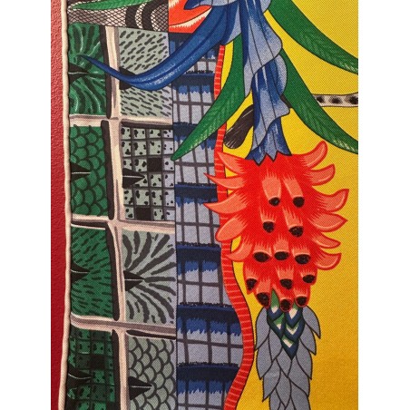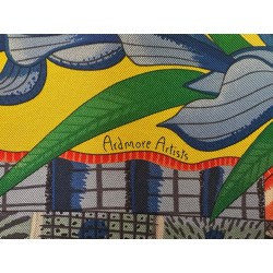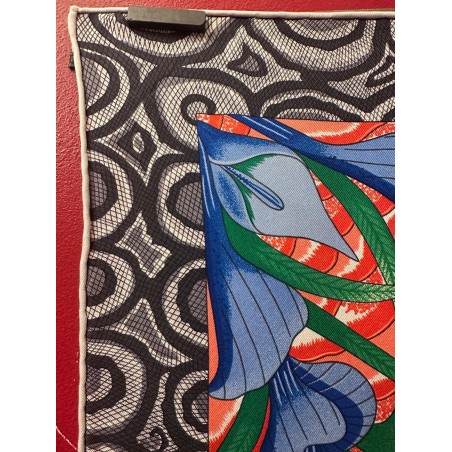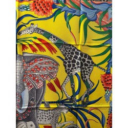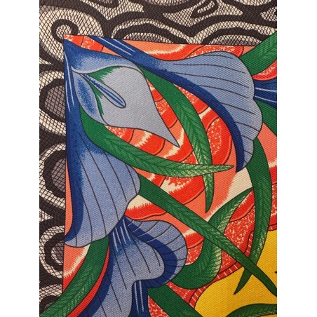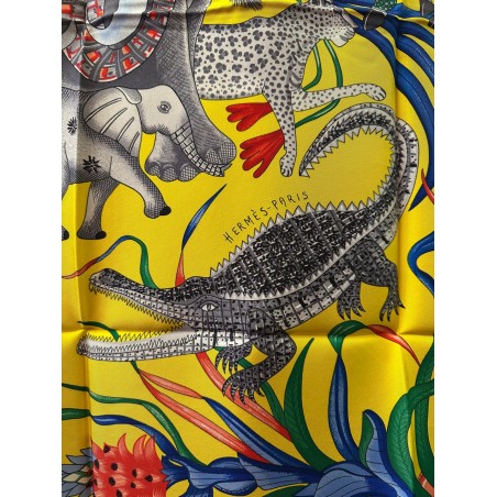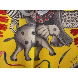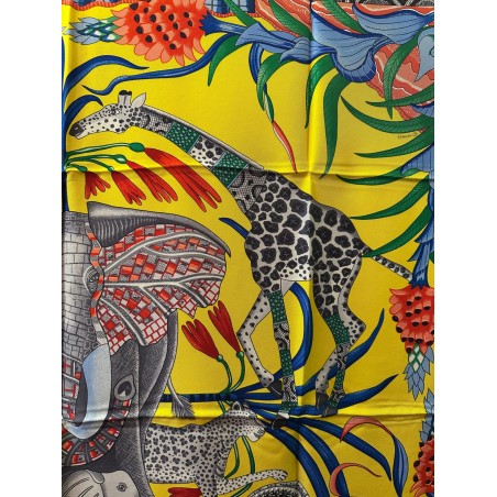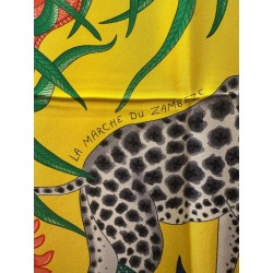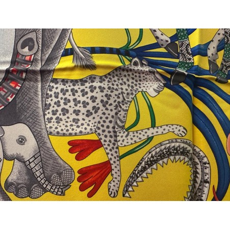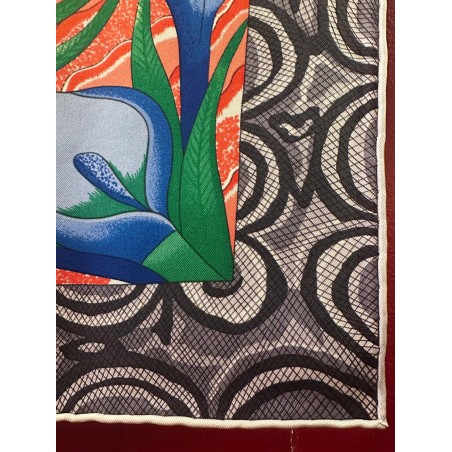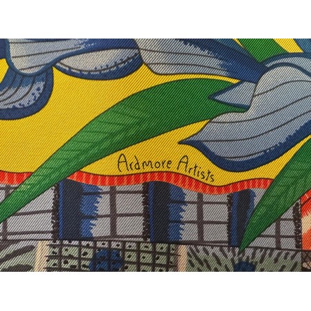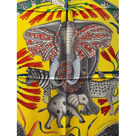 Au centre du carré s'avance un éléphant majestueux qui symbolise la famille et la puissance. Autour de lui, les animaux de ces terres qui s'étendent le long du fleuve Zambèze, de la savane aux marais : girafes, crocodiles, zèbre et léopard. La flore de ces contrées se découpe autour de cette composition agrémentée de motifs rappelant pythons et crocodiles. La marche du Zambèze inaugure la collaboration d'Ardmore avec Hermès. Ce collectif d'artistes potiers zoulous, zimbabwéens et sothos a été fondé en 1985 par Fée Halsted dans la région du KwaZulu-Natal, en Afrique du Sud. Il compte aujourd'hui 70 créateurs cultivant un art empreint d'un style traditionnel réinventé.