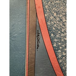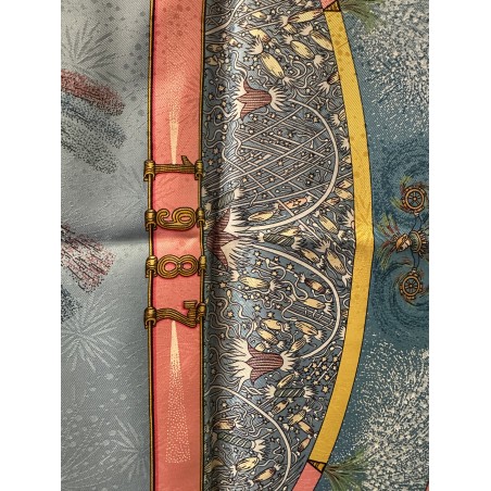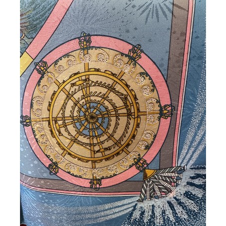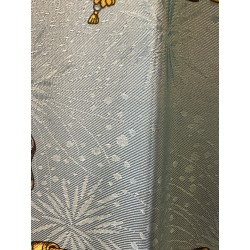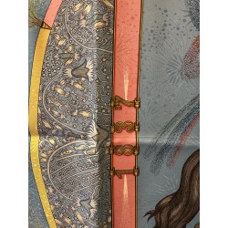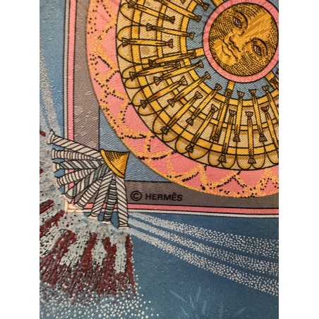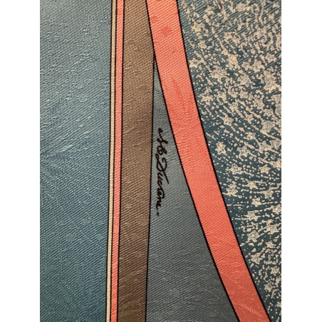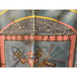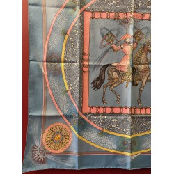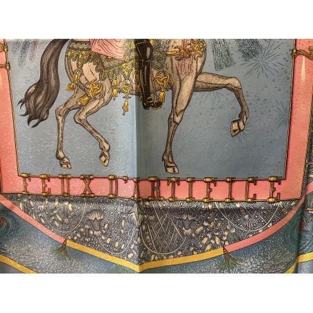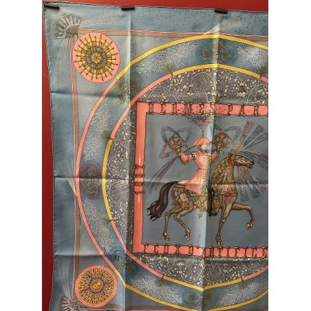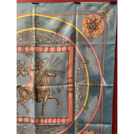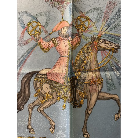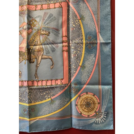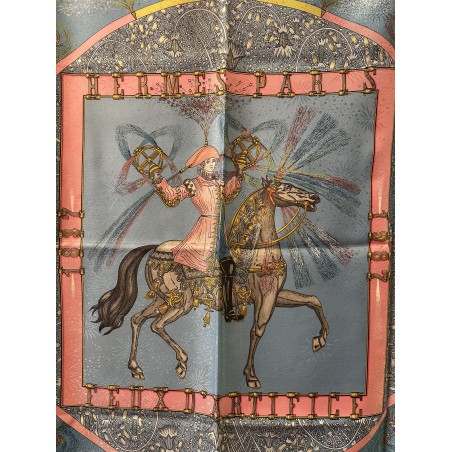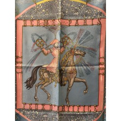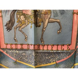 Fondée à Paris en 1837 par Thierry Hermès, la maison Hermès était à l'origine une manufacture de harnais et de selles. Hermès est une entreprise familiale qui appartient encore de nos jours aux héritiers du fondateur. Le cavalier présent au centre du carré correspond à la statue équestre que l'on peut apercevoir en levant les yeux, rue du Faubourg Saint Honoré, sur le toit de la maison Hermès