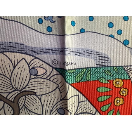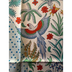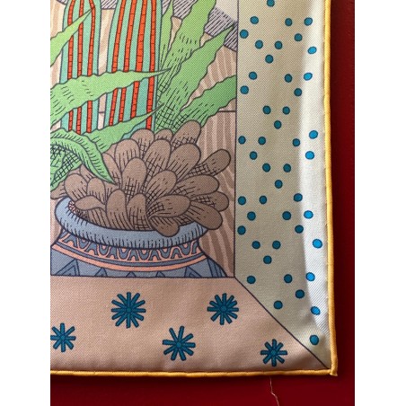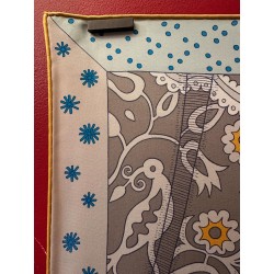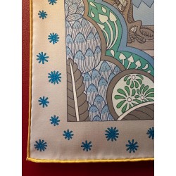 Particularité: bords roulottés d'une couleur différence de celle du tour du foulard