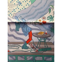 Sophia Andreotti et Édouard Baribeaud rendent ici hommage à l'énergie créatrice des femmes, depuis Enheduanna, prêtresse sumérienne et première poétesse attestée de l'Histoire, jusqu'à la peintre Frida Kahlo et la musicienne Patti Smith. Figures emblématiques de leur époque, leur regard sur le monde et leur liberté continuent d'inspirer les artistes contemporains. Le rideau s'ouvre et sur la scène, une rockeuse chante le monde avec passion, sa guitare électrique posée non loin d'elle. Du micro jaillit une nature virevoltante : perroquets et papillons tourbillonnent, tandis qu'un loup bondit prestement dans ce décor truffé de références à l'histoire de l'art, notamment aux miniatures indiennes et aux tissus traditionnels mexicains.